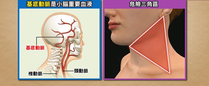 危險區域: 頸部前側(頸動脈三角區)不宜按壓,